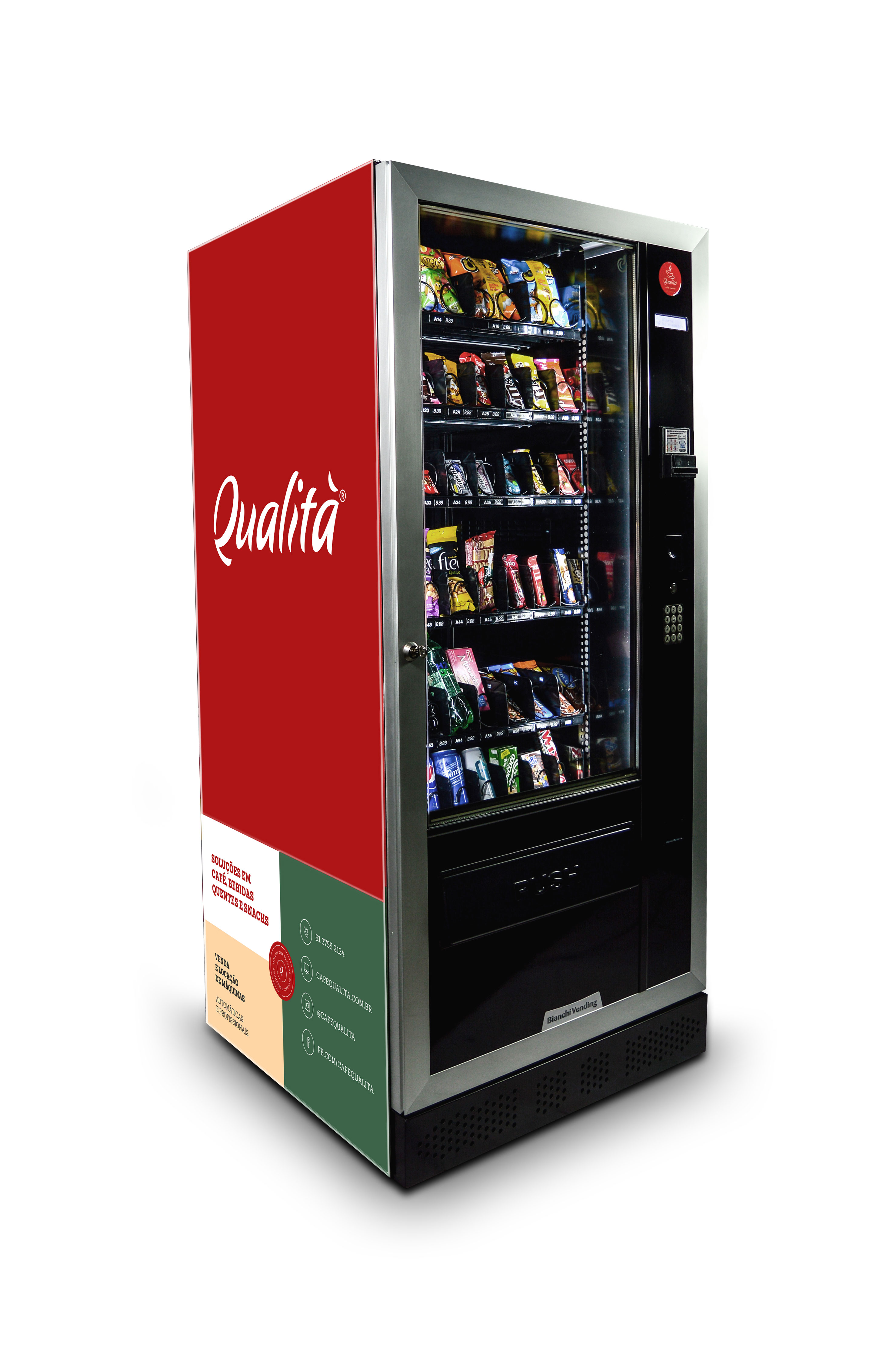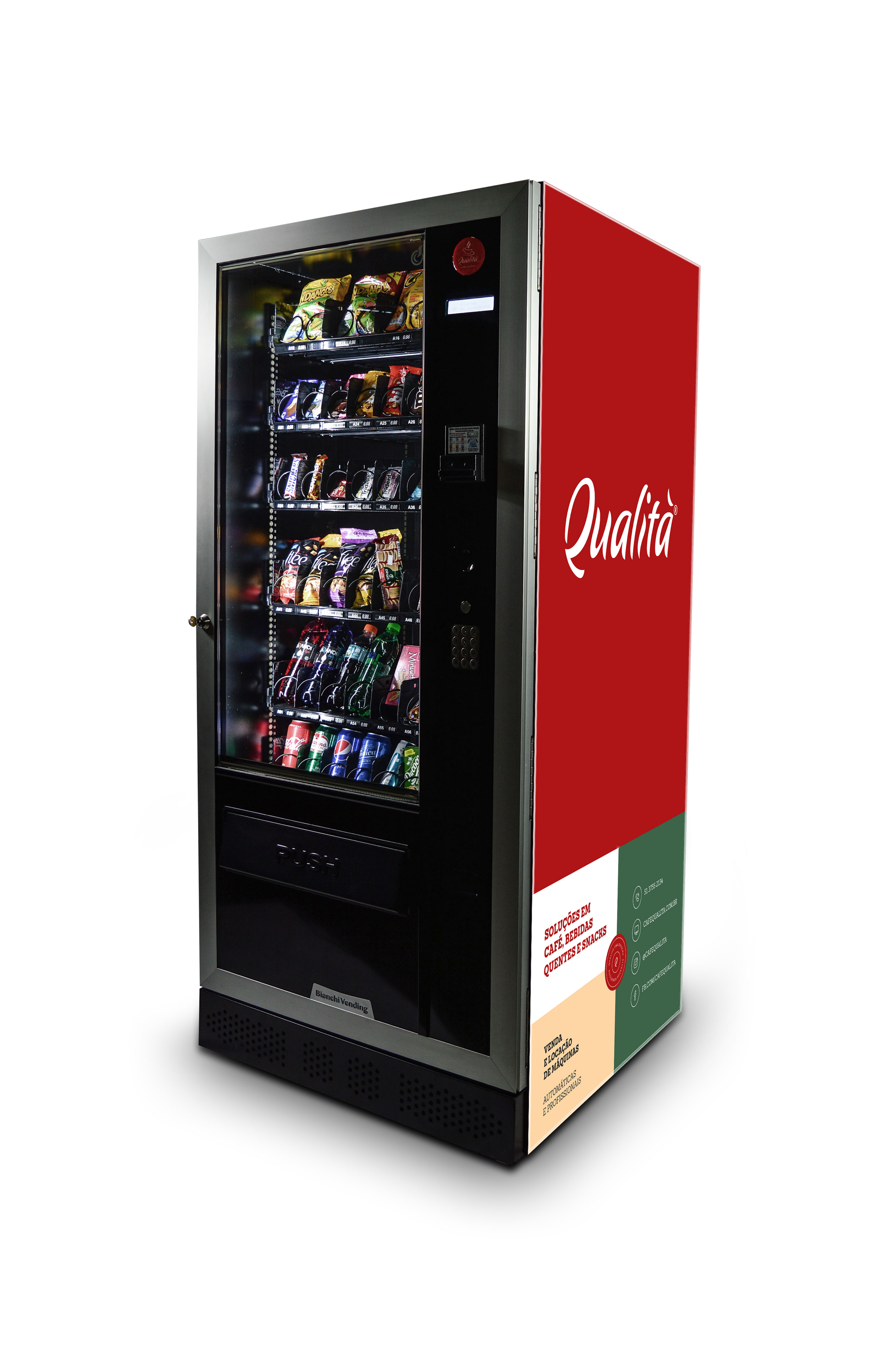 A ARIA M MASTER é uma máquina automática de autosserviço que oferece vasta diversidade de alimentos (salgados e doces) e bebidas geladas com temperatura controlada. Eficaz, autônoma e de alto rendimento, é ideal para quem busca versatilidade e diversidade e, também a praticidade da tecnologia para trazer maior rentabilidade e comodidade para o dia a dia.